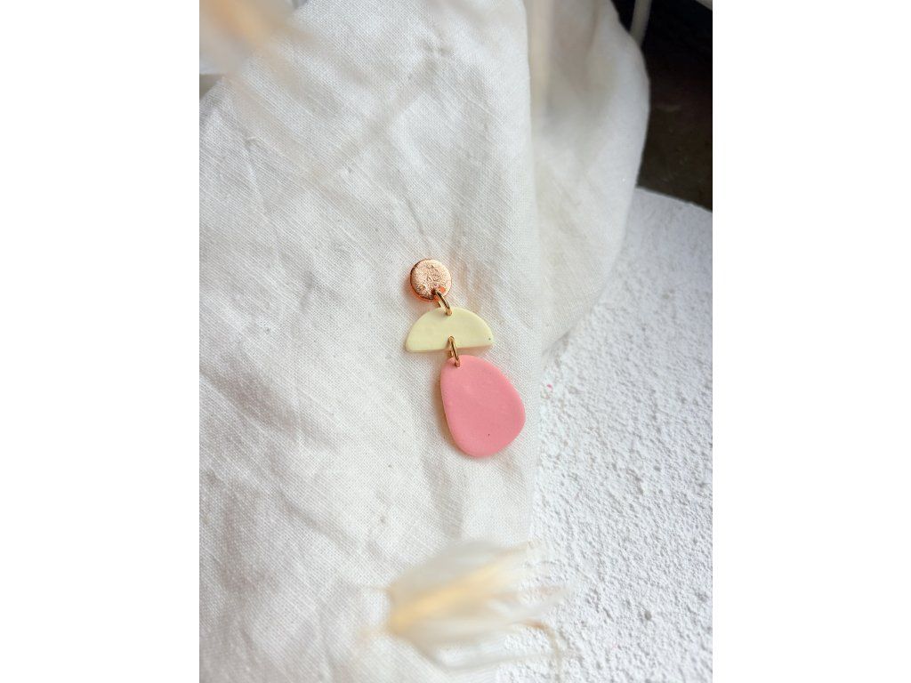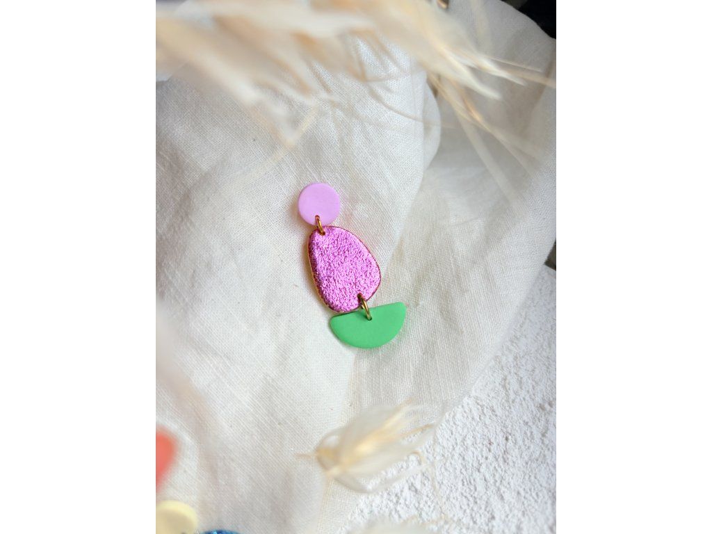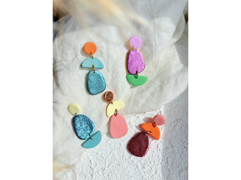 Barevná kombinace, která působí jako malý sladký detail na uších. Organické tvary a jemný lesk dávají náušnicím hravý, skoro až „tekutý“ look. Přesto zůstávají lehké a pohodlné na celodenní nošení. Každý pár vzniká ručně, takže barevné přechody i struktura jsou vždy trochu jiné – a právě to z nich dělá originál.