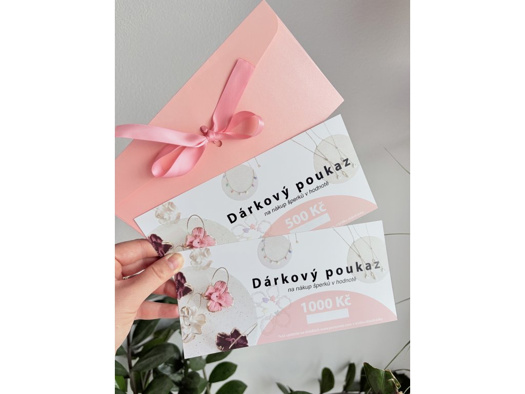 Naše dárkové poukazy na šperky v hodnotě 500 Kč a 1000 Kč potěší každou ženu, která miluje jedinečné kousky. 💍✨