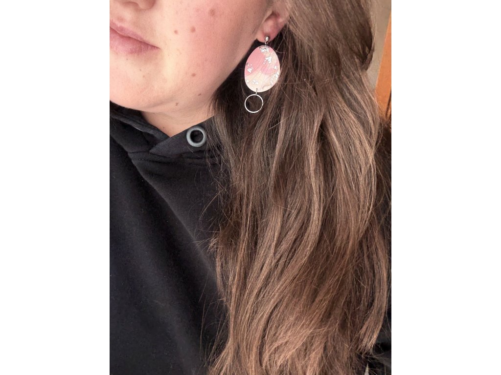 Visací náušnice z polymeru. Materiál je vhodný pro výrobu náušnic, kvůli jeho lehkosti.