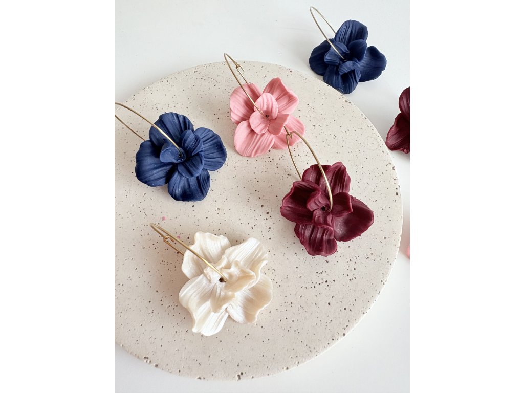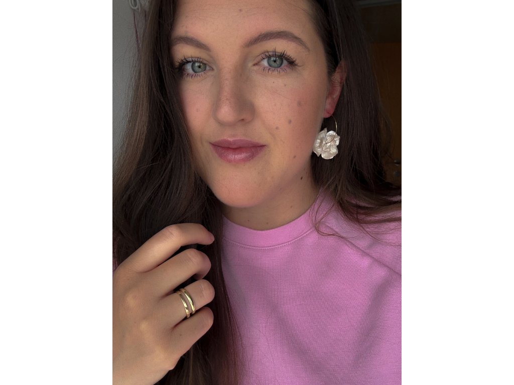 Každý květ je ručně tvarovaný a zavěšený na jemném kruhu ve zlaté nebo stříbrné variantě.