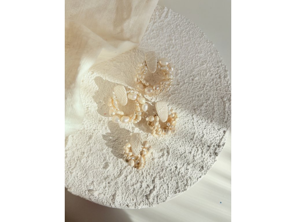 Originální náušnice z perel a polymeru. Každý pár je jedinečný – kombinace přírodních perel a ručně modelovaného detailu vytváří harmonii mezi elegancí a hravostí.