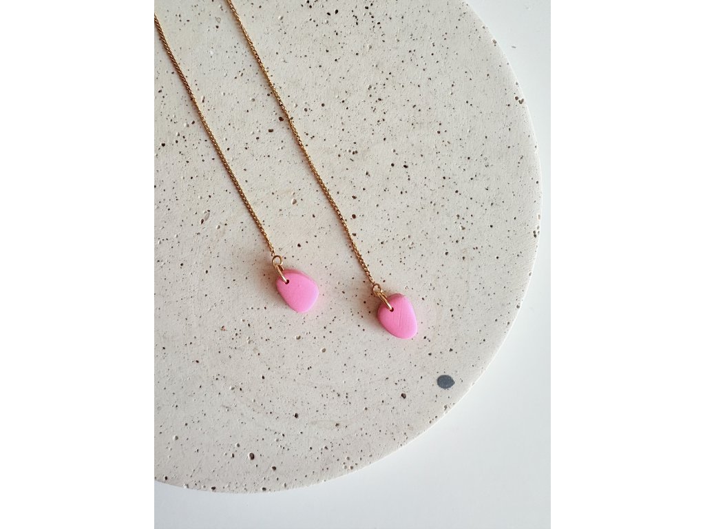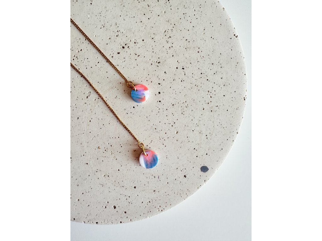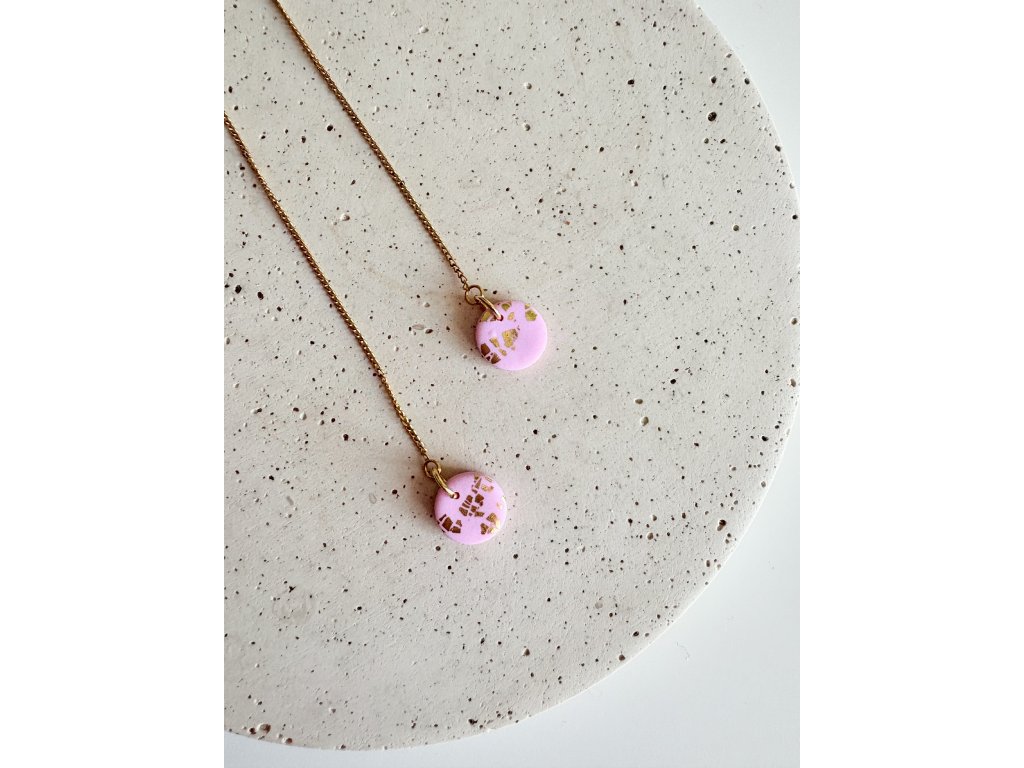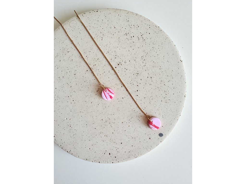 Visací náušnice z chirurgické oceli a přívěsky z polymeru a pravých perel.