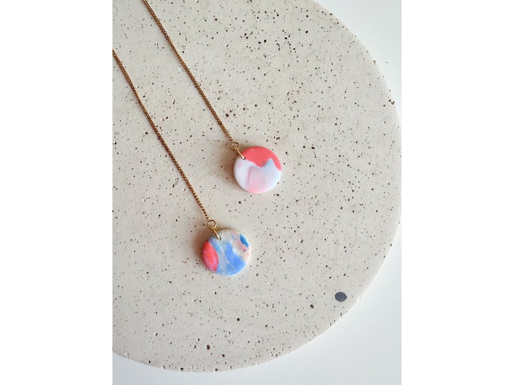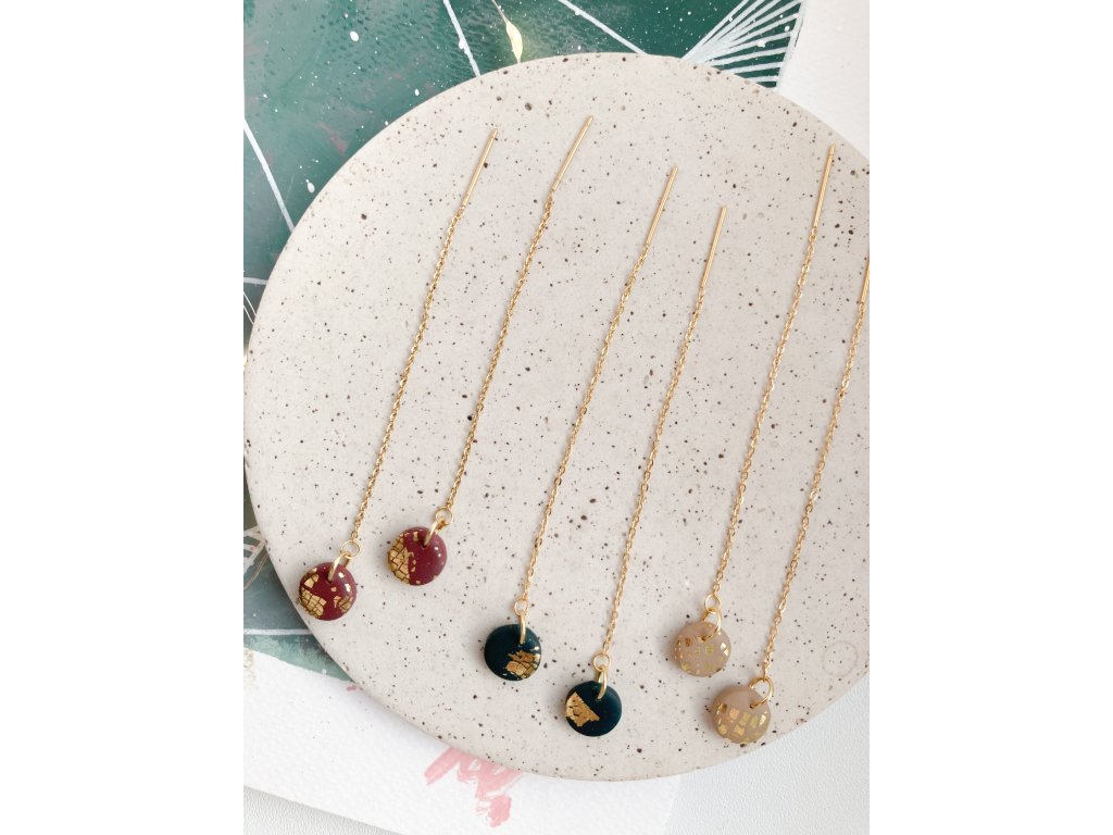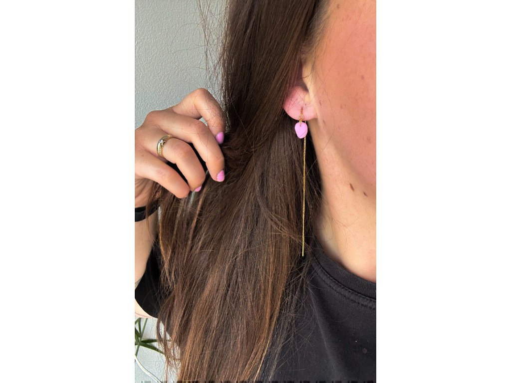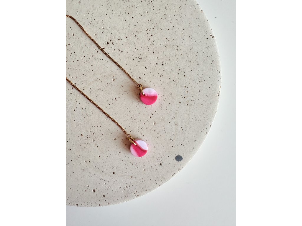 Visací náušnice z chirurgické oceli a přívěsky z polymeru a pravých perel.