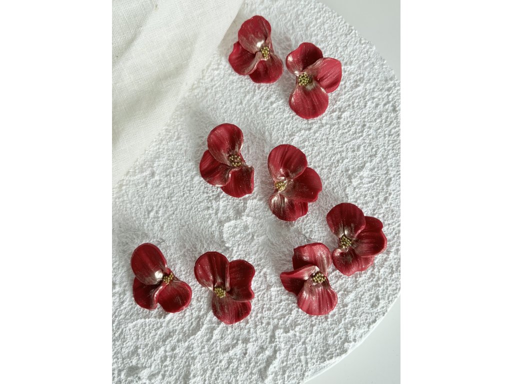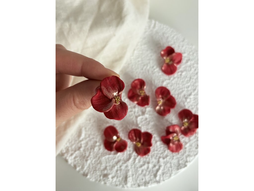 Ručně tvarované květinové pecky v odstínu hluboké, slavnostní červené.